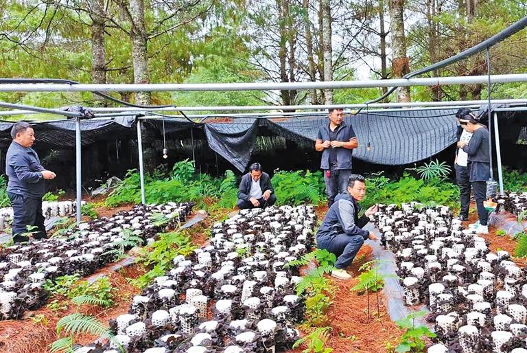 林芝市墨脫縣格當鄉(xiāng)林下資源合作社技術員查看木耳長勢。