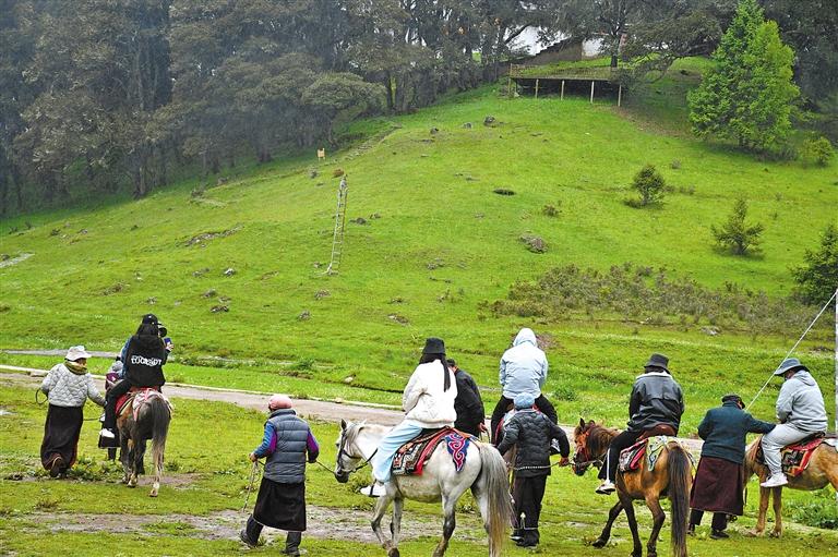 圖為游客在魯朗體驗(yàn)騎馬。 記者 張猛 攝