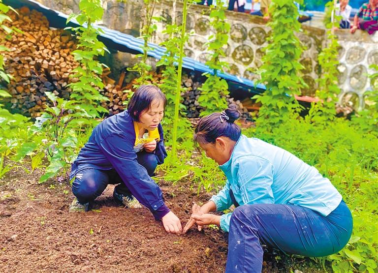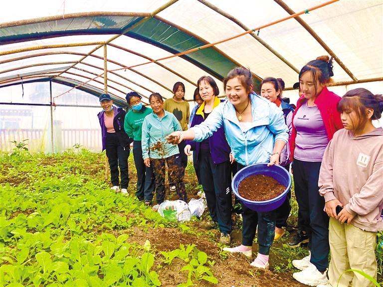 多龍崗村農(nóng)民在大棚內(nèi)實(shí)操土地施肥。記者 王敏 通訊員 郎玲 攝