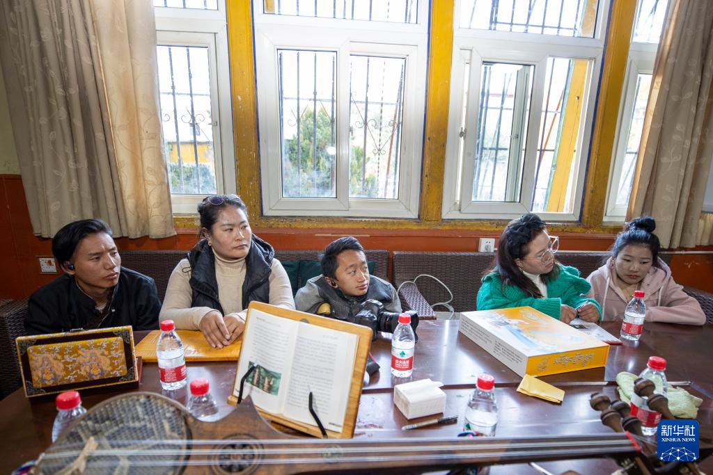 西藏拓崗文化傳播有限公司負(fù)責(zé)人覺列(右一)在直播前與直播團(tuán)隊(duì)討論直播方案(11月10日攝)。新華社記者 姜帆 攝