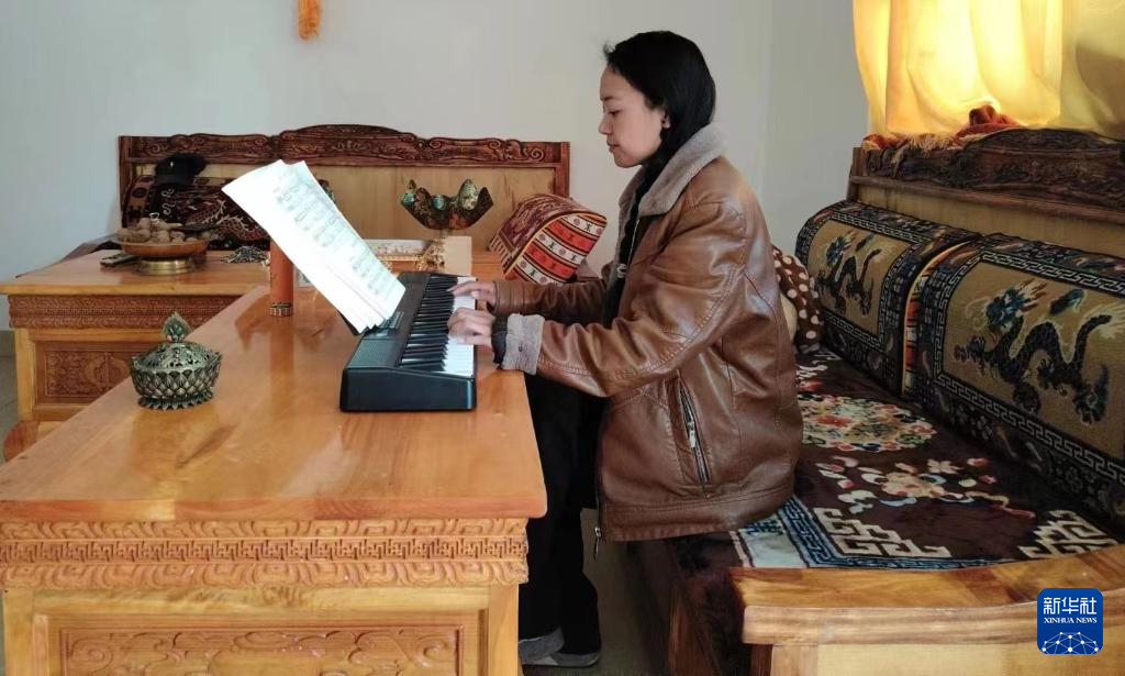 走進(jìn)西藏林芝市察隅縣上察隅鎮(zhèn)永寧村一戶(hù)村民家里,藏式茶幾上的電子琴引人矚目,一旁展開(kāi)的五線譜本上寫(xiě)滿(mǎn)了筆記。