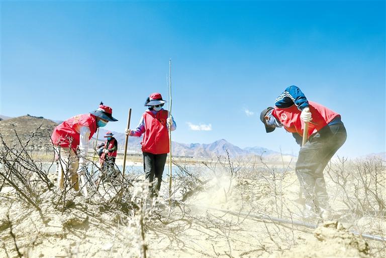 雅魯藏布江兩岸人義務植樹活動