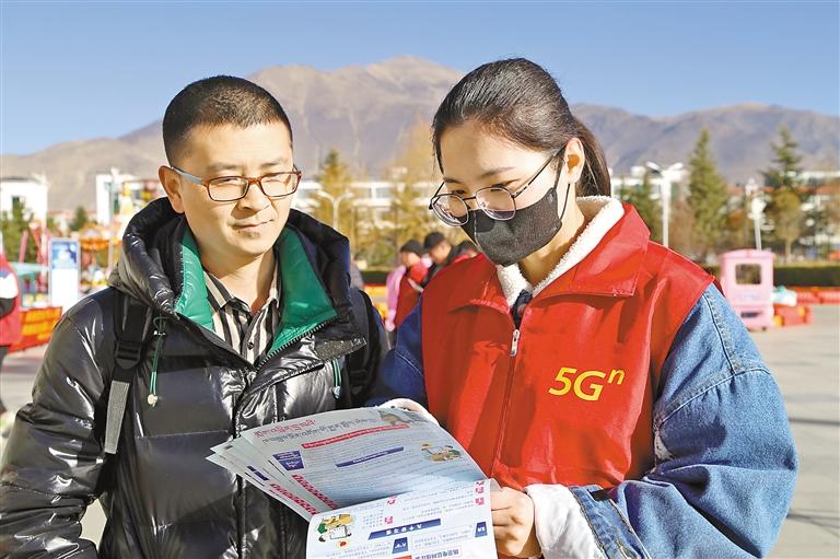 圖為電信、移動(dòng)、聯(lián)通山南分公司工作人員在山南市體育場(chǎng)開(kāi)展“文明用網(wǎng) 安全用網(wǎng)”專題宣傳教育活動(dòng)。 記者 武沛濤 攝