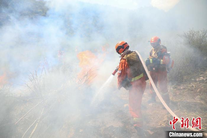 “報(bào)告聯(lián)指,卡若區(qū)俄洛鎮(zhèn)俄洛村東南方向約2公里處發(fā)生森林火災(zāi),大火借風(fēng)勢(shì)迅速蔓延,過火面積約10畝?!苯拥綀?bào)警后,聯(lián)合指揮部立即組織森林消防、消防救援、卡若區(qū)就近護(hù)林員等共計(jì)140余人,按照任務(wù)區(qū)域劃分戰(zhàn)斗小組,攜帶各類滅火裝備迅速進(jìn)入戰(zhàn)斗。結(jié)合現(xiàn)場(chǎng)火勢(shì),各戰(zhàn)斗小組采用水泵分隊(duì)以水滅火、消防車增濕作業(yè)、常規(guī)分隊(duì)清理余火相結(jié)合的方式實(shí)施滅火。