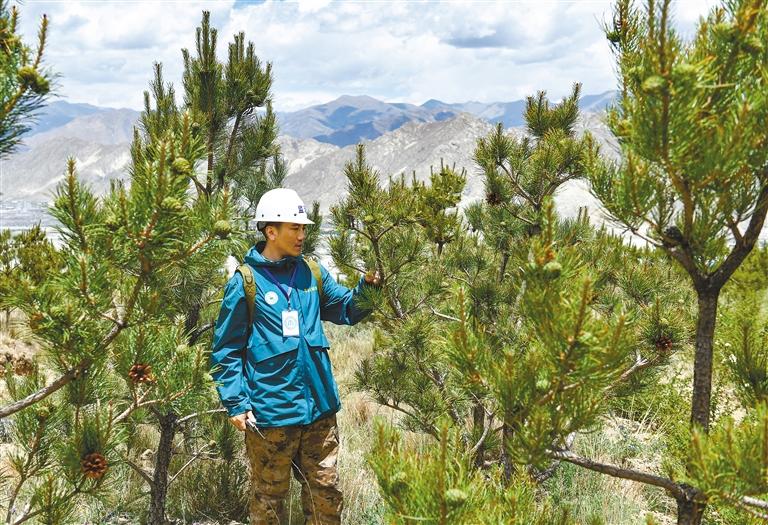工程的綠意還延伸至拉薩貢嘎機(jī)場周邊的山體,山南市林草局林業(yè)和草原有害生物防治站檢疫員次仁羅布在造林現(xiàn)場進(jìn)行苗木復(fù)檢工作,復(fù)檢結(jié)果顯示這批苗木的成活率達(dá)到92%?!斑@里是走出貢嘎機(jī)場的第一站,旅客們可以直接看到我們種下的綠色,很有意義?!贝稳柿_布說。