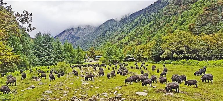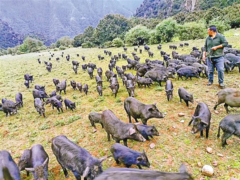 圖為鄉(xiāng)源藏香豬養(yǎng)殖農(nóng)民專業(yè)合作社養(yǎng)殖的藏香豬。記者 胡文 攝