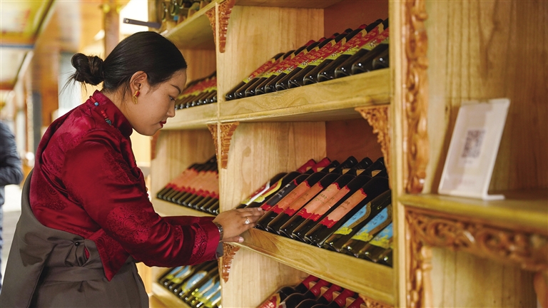 為了讓桑日葡萄酒產(chǎn)品走出去,湖南省援藏工作隊(duì)牽線搭橋,利用葡萄酒招商會(huì)、拉薩藏博會(huì)、北京中小企業(yè)年會(huì)及招商引資會(huì)等平臺(tái)做好宣傳推介,并幫助其成功上線湖南省消費(fèi)幫扶公共服務(wù)平臺(tái),形成了線上線下一體的營銷模式。2023年,促成帕竹酒莊與湖南中車、岳陽市供銷社等單位簽訂定向購銷合同,累計(jì)帶動(dòng)桑日葡萄酒銷售額達(dá)230萬元。
