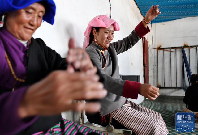 木托村婦委會(huì)主任措吉卓嘎在合作社院子里纏毛線(8月23日攝)。
