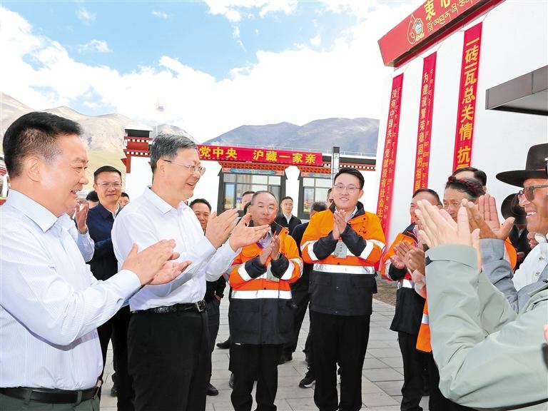 今年1月7日日喀則市定日縣發(fā)生6.8級地震,造成大量房屋倒塌或受損,群眾生活不同程度受到影響。在自治區(qū)黨委的堅(jiān)強(qiáng)領(lǐng)導(dǎo)和統(tǒng)一部署下,上海市援藏力量全力以赴,助力推動災(zāi)后恢復(fù)重建工作。目前,部分重建新房已拆下了腳手架,實(shí)現(xiàn)了封頂。代表團(tuán)來到定日縣長所鄉(xiāng)森嘎村,走進(jìn)村民臨時集中居住點(diǎn),察看生活設(shè)施和居住環(huán)境,同卓嘎、達(dá)娃玉珍一家人圍坐在一起聊家常,關(guān)切詢問受災(zāi)情況,詳細(xì)了解生產(chǎn)生活和需要解決的實(shí)際困難。達(dá)娃玉珍告訴滬藏兩地領(lǐng)導(dǎo),房子在地震中受損倒塌了,共產(chǎn)黨帶著我們建起了更好的新家,就盼著搬進(jìn)新家了??疾鞛?zāi)后重建新居時,代表團(tuán)認(rèn)真聽取上海助力定日縣抗震救災(zāi)和災(zāi)后恢復(fù)重建等情況介紹,仔細(xì)察看施工細(xì)節(jié),了解服務(wù)設(shè)施配套建設(shè)情況,看望慰問村民代表和規(guī)劃建設(shè)代表。兩地同志表示,要深入貫徹落實(shí)習(xí)近平總書記重要指示精神,著眼宜居安居,堅(jiān)持科學(xué)施工,有序推進(jìn)災(zāi)后恢復(fù)重建工作,為受災(zāi)群眾重建美好家園、共創(chuàng)幸福生活。要努力打造凝聚人心工程、民族團(tuán)結(jié)工程、高質(zhì)量發(fā)展工程,讓各族群眾更加深刻感受到以習(xí)近平同志為核心的黨中央對西藏人民的關(guān)心關(guān)愛,讓各族群眾更加深刻感受到社會主義制度的優(yōu)越性和祖國大家庭的溫暖,更加自覺鑄牢中華民族共同體意識。