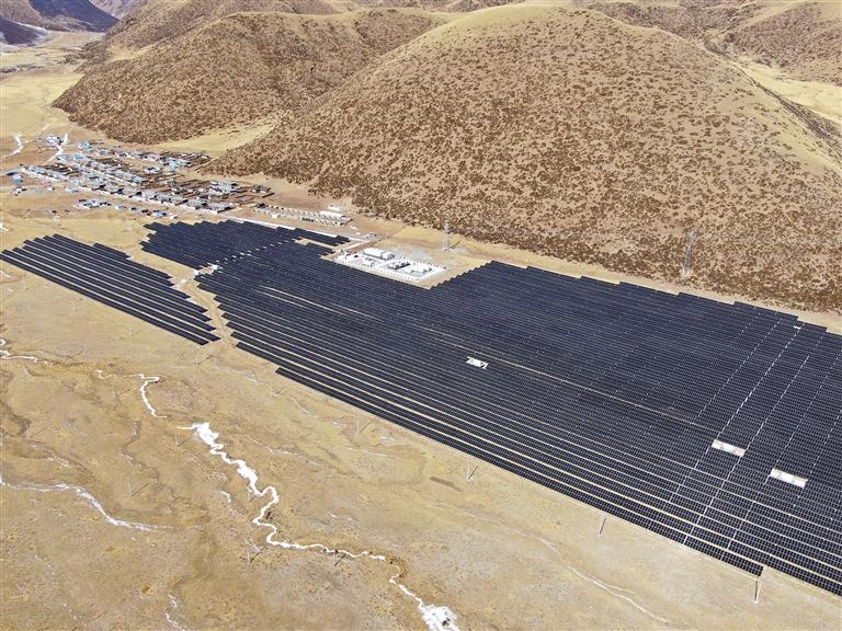 圖為位于工布江達(dá)縣加興鄉(xiāng)松多村的中廣核光儲電站光伏板陣列區(qū)。記者 劉楓 攝