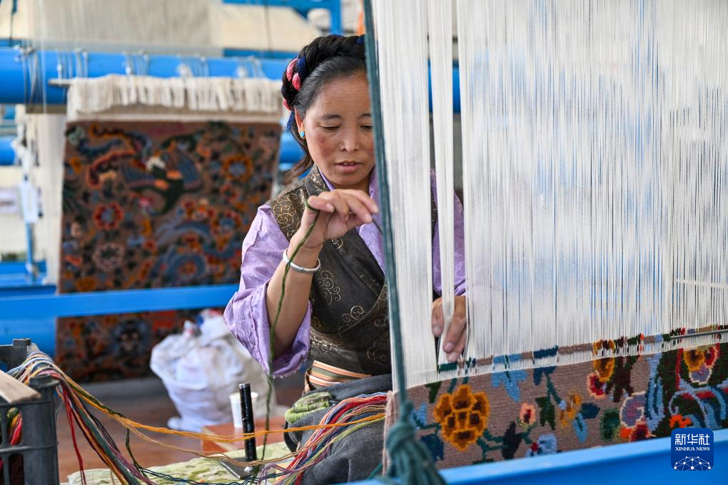 近年來(lái),江孜藏毯不僅嚴(yán)守織造技藝中代代相傳的“魂”——穿桿式連環(huán)八字扣,又在數(shù)字制圖、生產(chǎn)工藝提升方面創(chuàng)新,使圖案產(chǎn)生光影流動(dòng)的3D效果。當(dāng)?shù)氐牟靥汗就ㄟ^(guò)建立合作社、開(kāi)辦技能培訓(xùn)班等方式擴(kuò)大靈活就業(yè)規(guī)模,讓更多人在家門(mén)口織藏毯增收,助推鄉(xiāng)村振興。