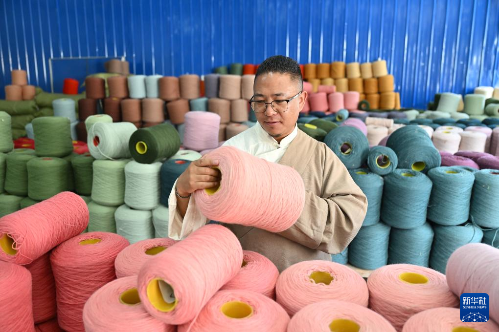 7月18日,江孜藏毯文化發(fā)展有限責(zé)任公司創(chuàng)始人旦增稱來(lái)在倉(cāng)庫(kù)里檢查染色后的紗線。新華社記者 李鑫 攝