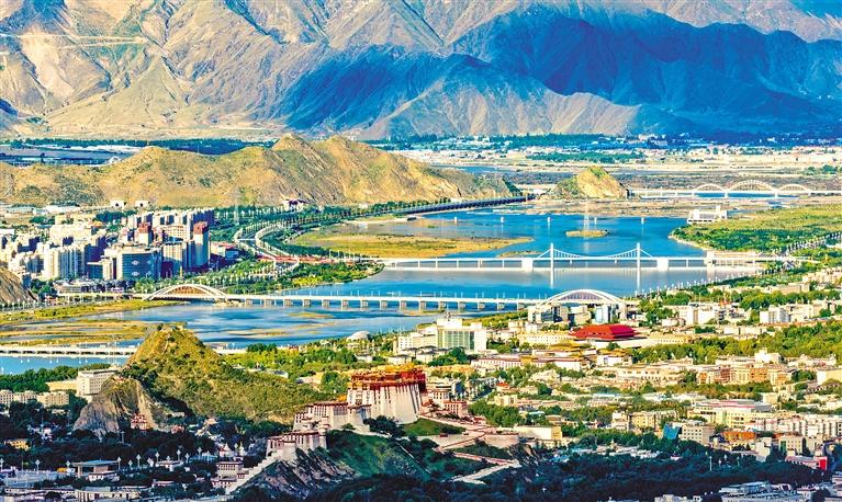 1965年8月25日,橫跨拉薩河的第一座大橋——拉薩大橋正式落成通車(chē),結(jié)束了當(dāng)?shù)厝罕娍颗Fしざ珊拥臍v史。如今僅在拉薩市區(qū),就有柳東大橋、青藏鐵路拉薩河特大橋、和美橋、柳梧大橋、連心橋、迎親橋、拉薩大橋、藏?zé)岽髽?、納金大橋等眾多大橋跨越拉薩河。拉薩河上的橋梁方便了人們的生活,扮靚了城市的風(fēng)景,也是西藏經(jīng)濟(jì)社會(huì)發(fā)展、交通基礎(chǔ)設(shè)施建設(shè)日新月異的見(jiàn)證。