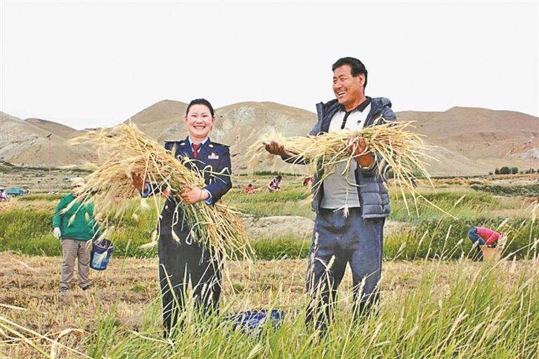 圖為阿里地區(qū)稅務(wù)干部在幫農(nóng)民收獲青稞。文/圖 通訊員 段輝鵬 平措旺加 記者 張琳