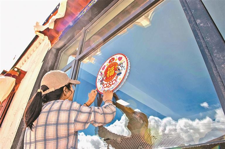 定結縣郭加鄉(xiāng)乃村重建點,群眾正在為新家貼福字。記者 旦增嘎瓦 攝