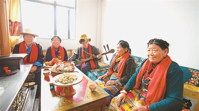 拉孜縣熱薩鄉(xiāng)強公村群眾在新居內共度重陽佳節(jié)。記者 旦增嘎瓦 攝