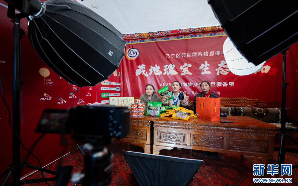 12月1日拍攝的第45屆雅礱物資交流會(huì)電商直播主場(chǎng)。新華網(wǎng) 旦增努布 攝