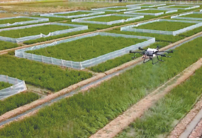 現代化農機設備在農業(yè)生產過程中的運用,極大提高了農業(yè)生產效率。圖為在印度尼西亞西爪哇省卡拉旺縣的一處水稻試驗田里,中國生產的農用無人機進行殺蟲作業(yè)。