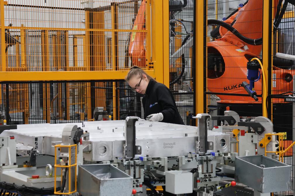 2月23日,在法國呂茨,中國敏實集團與法國雷諾集團成立的合資公司的員工在電池盒產線上工作。新華社記者張百慧攝