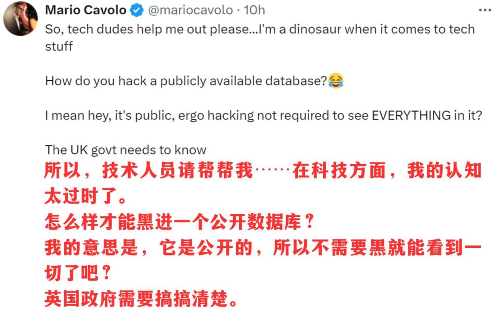 更重要的是,相關(guān)政客言論中的邏輯謬誤也讓人不忍直視。脫口秀特意截取了英國(guó)議會(huì)議員帕特·麥克法登的提問(wèn):“副首相為什么認(rèn)為中國(guó)政府會(huì)去黑一個(gè)公開(kāi)數(shù)據(jù)庫(kù)?”這也讓美國(guó)作家馬意駿忍俊不禁: