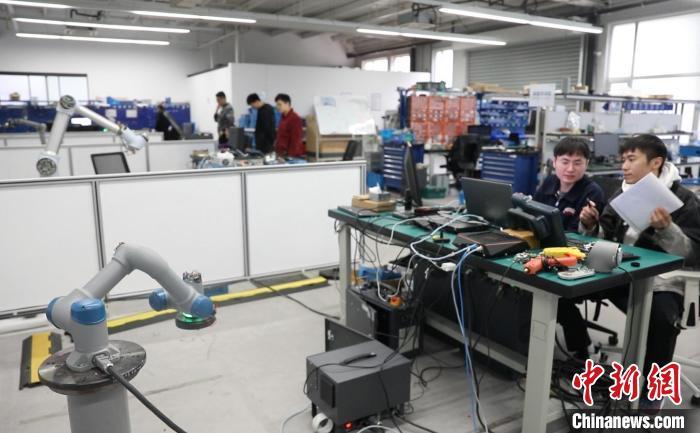 人工智能讓中國(guó)制造業(yè)從“追趕者”變身“領(lǐng)跑者”。圖為中科新松的工作人員正在對(duì)機(jī)器手臂進(jìn)行位置標(biāo)定。 張亨偉 攝
