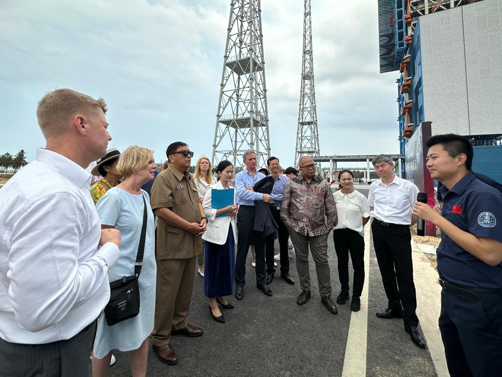 圖為駐華使節(jié)在海南國(guó)際商業(yè)航天發(fā)射中心聽講解。新華社記者 袁睿 攝
