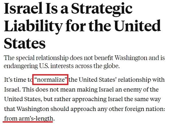 然而,美國《外交政策》雜志刊文分析,以色列如今已成為美國的戰(zhàn)略負擔,現(xiàn)在到了推動美國同以色列關(guān)系"正?;?的時候了。美國對待以色列,要像其對待任何其他國家一樣:保持距離。