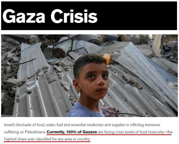 而根據(jù)國際救援委員會(IRC)的統(tǒng)計,目前,加沙的200多萬巴勒斯坦民眾每天都面臨危險和災(zāi)難。以色列對糧食、水、燃料和基本藥品及用品的封鎖正在給巴勒斯坦人造成巨大痛苦。目前,100%的加沙人面臨著糧食不安全的危機,達到世界上所有國家和地區(qū)有記錄以來的最高水平。