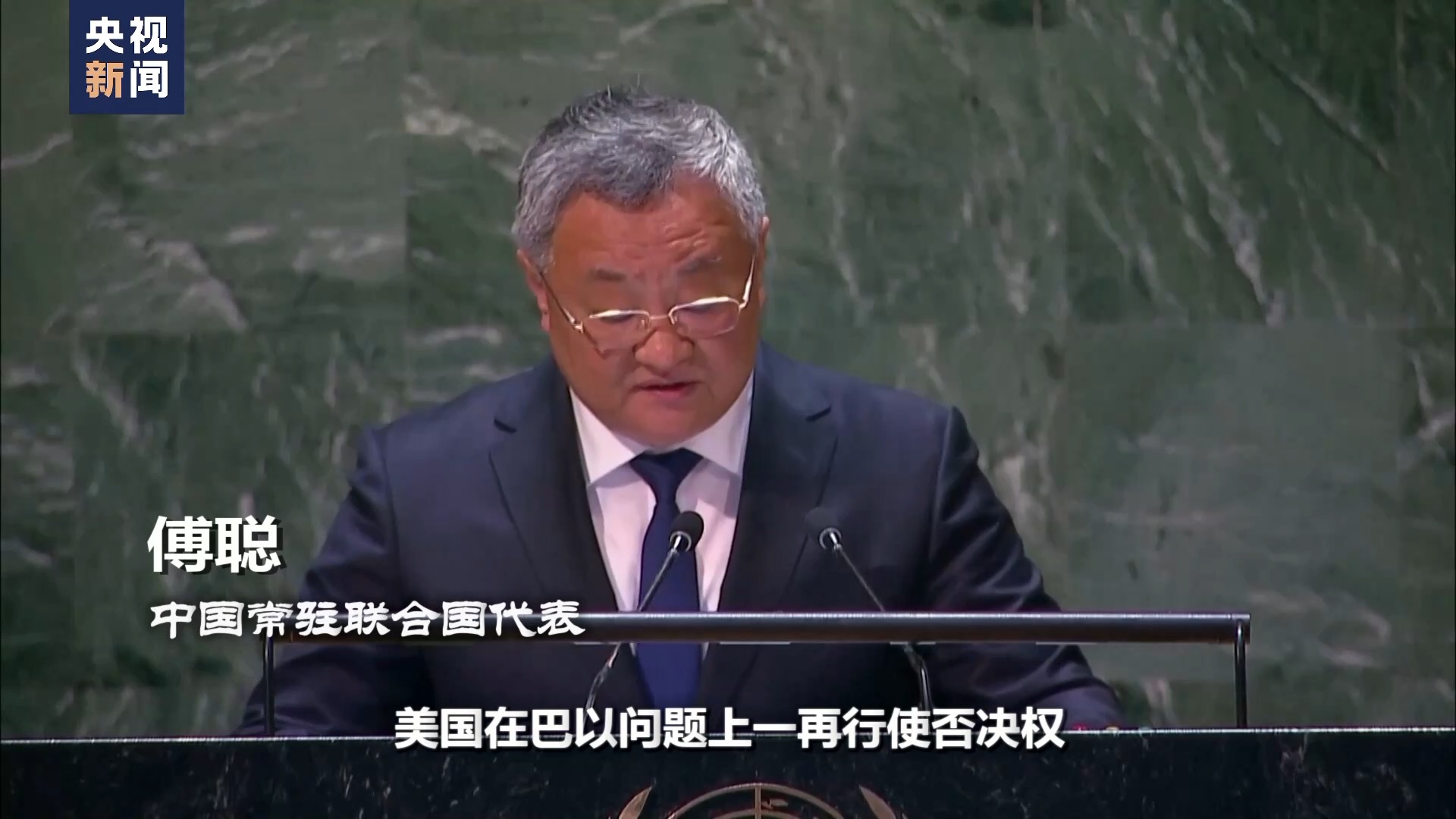 中國常駐聯(lián)合國代表 傅聰:美國在巴以問題上一再行使否決權(quán),無理阻撓國際社會為解決巴勒斯坦長期遭受歷史不公所作出的努力,不符合一個負責任大國的擔當。