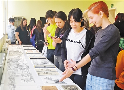 在諾維薩德大學孔子學院,學員正在欣賞中國傳統(tǒng)繪畫作品。諾維薩德大學孔子學院供圖