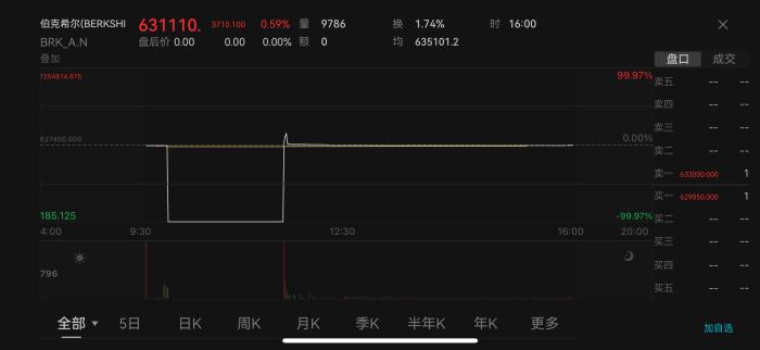 周一開(kāi)盤,美股遭遇多股異動(dòng),40余只股票集體瞬間暴跌近100%。其中,股神巴菲特旗下的伯克希爾公司A類股從每股62萬(wàn)美元的高價(jià)跳至185.1美元,巴里克黃金、紐斯卡爾動(dòng)力公司等股票一度掉至不到1美元/股的“白菜價(jià)”。