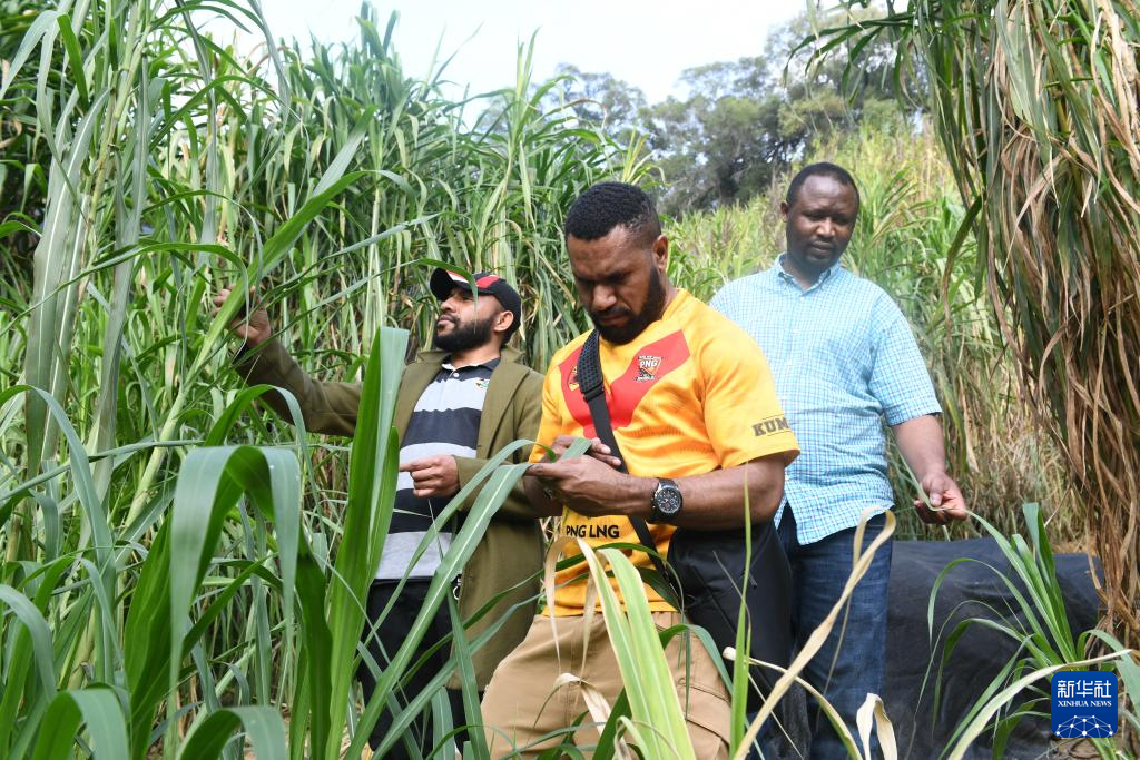 2024年3月28日,在位于福州的福建農(nóng)林大學(xué),來自盧旺達(dá)和巴布亞新幾內(nèi)亞的學(xué)生在“國際菌草苑”內(nèi)查看菌草長勢。新華社記者 林善傳 攝