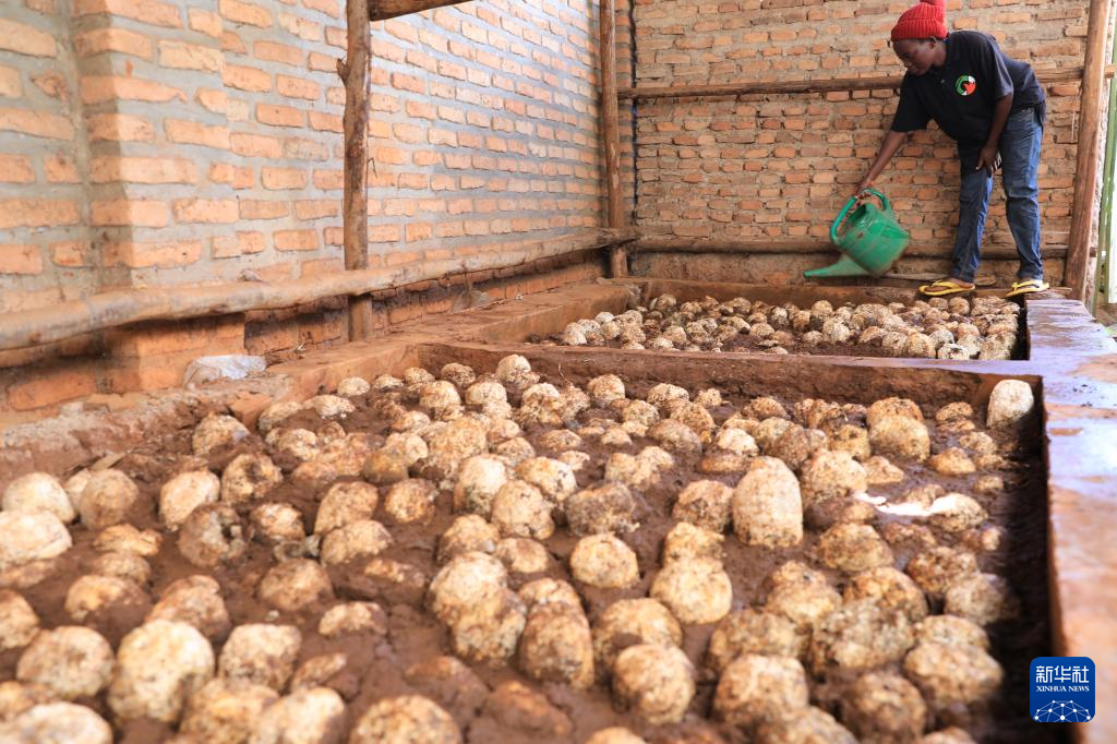 在盧旺達(dá)首都基加利,42歲的萊昂尼達(dá)斯·穆希米伊馬納經(jīng)營著當(dāng)?shù)匾?guī)模最大的食用菌培育工坊。他曾前往中國參加菌草技術(shù)培訓(xùn),回國后成立了這家工坊。