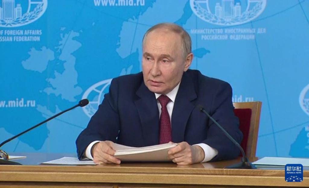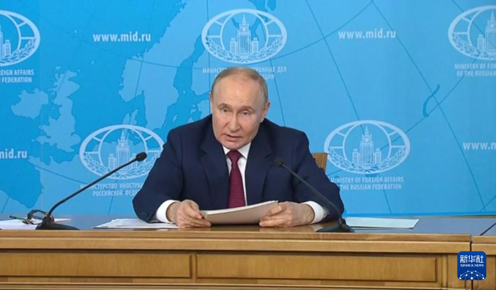 6月14日,在俄羅斯首都莫斯科,俄羅斯總統(tǒng)普京在俄外交部發(fā)表講話(視頻截圖)。新華社發(fā)