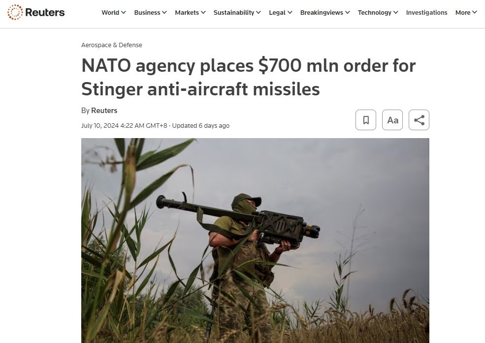 本月早些時(shí)候,北約宣布已經(jīng)以多個(gè)成員國(guó)的名義訂購(gòu)了價(jià)值近7億美元的“毒刺”肩扛式單兵防空導(dǎo)彈。這款導(dǎo)彈也是雷神制造。