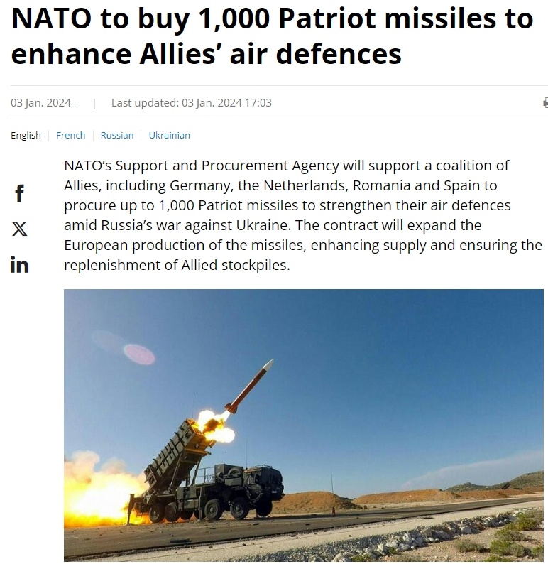 包括德國(guó)、荷蘭、羅馬尼亞和西班牙在內(nèi)的北約多個(gè)歐洲成員國(guó)今年1月決定聯(lián)合采購(gòu)總價(jià)值55億美元的1000枚“愛國(guó)者”導(dǎo)彈,以幫助加強(qiáng)烏克蘭軍隊(duì)的防空能力,并補(bǔ)充北約各援烏國(guó)家的庫(kù)存。