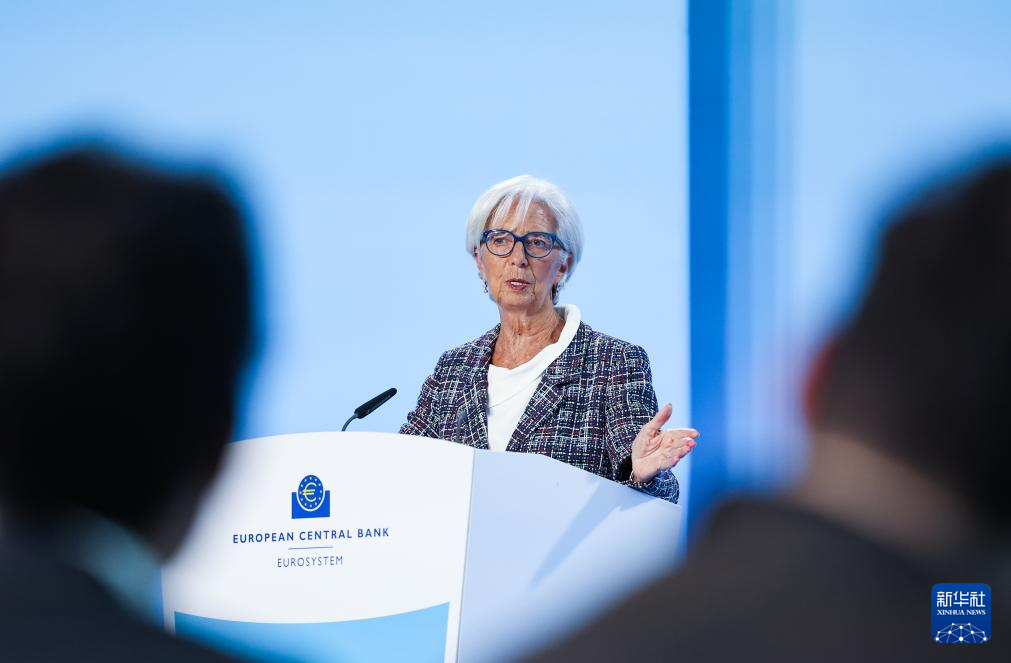 7月18日,歐洲中央銀行行長拉加德在德國法蘭克福歐洲中央銀行總部舉行的新聞發(fā)布會(huì)上講話。新華社記者 張帆 攝