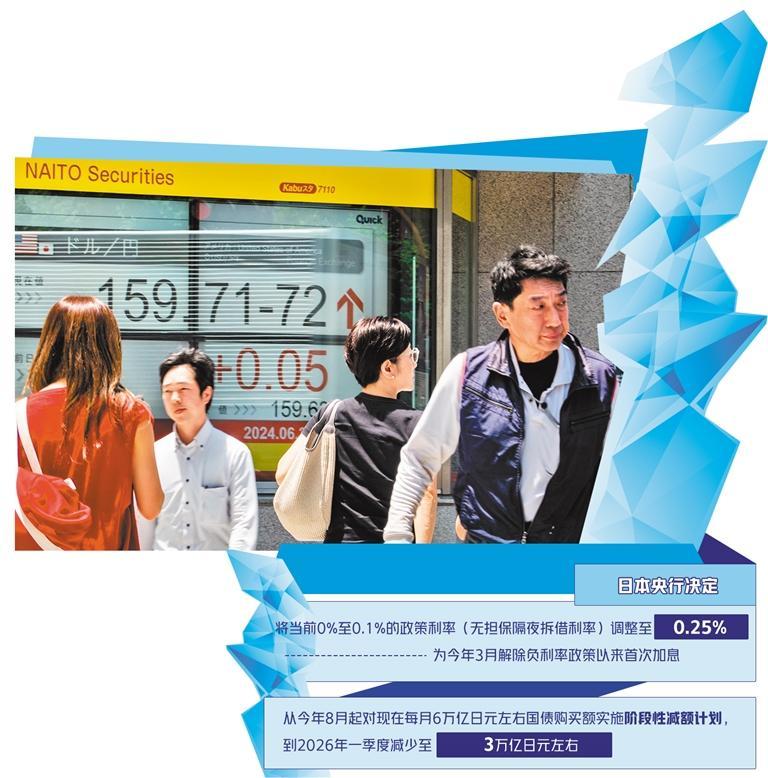 當(dāng)?shù)貢r間7月31日,日本央行舉行貨幣政策會議,決定將當(dāng)前0%至0.1%的政策利率(無擔(dān)保隔夜拆借利率)調(diào)整至0.25%。此次加息為今年3月解除負(fù)利率政策以來的首次加息。此外,日本央行還決定從今年8月起對現(xiàn)在每月6萬億日元左右的國債購買額實(shí)施階段性減額計劃,到2026年一季度減少至3萬億日元左右。