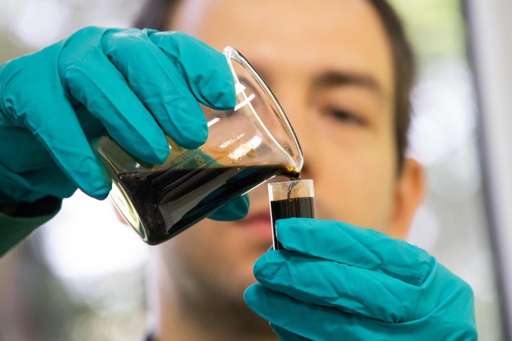2022年5月24日,在匈牙利薩茲豪隆包陶多瑙河煉油廠,一名工人對(duì)通過(guò)阿德里亞輸油管道運(yùn)達(dá)的原油樣品進(jìn)行質(zhì)量分析。新華社發(fā)(弗爾季·奧蒂洛攝)