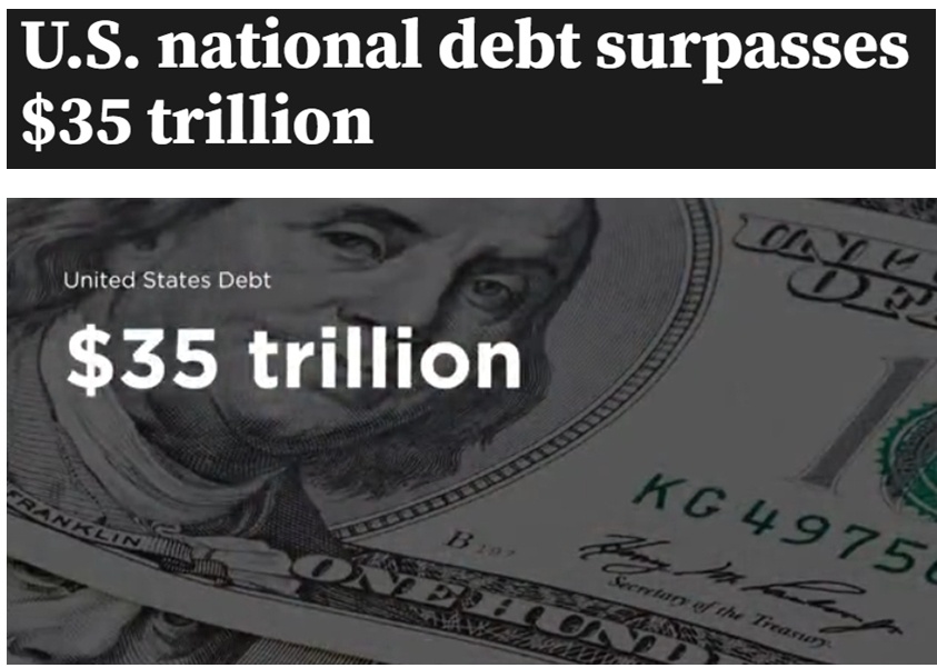 根據(jù)美國財政部近日發(fā)布的最新數(shù)據(jù),美國國債已超35萬億美元。目前,美國債務(wù)總額比七國集團中其他六國的國債總和還要多出15%。
