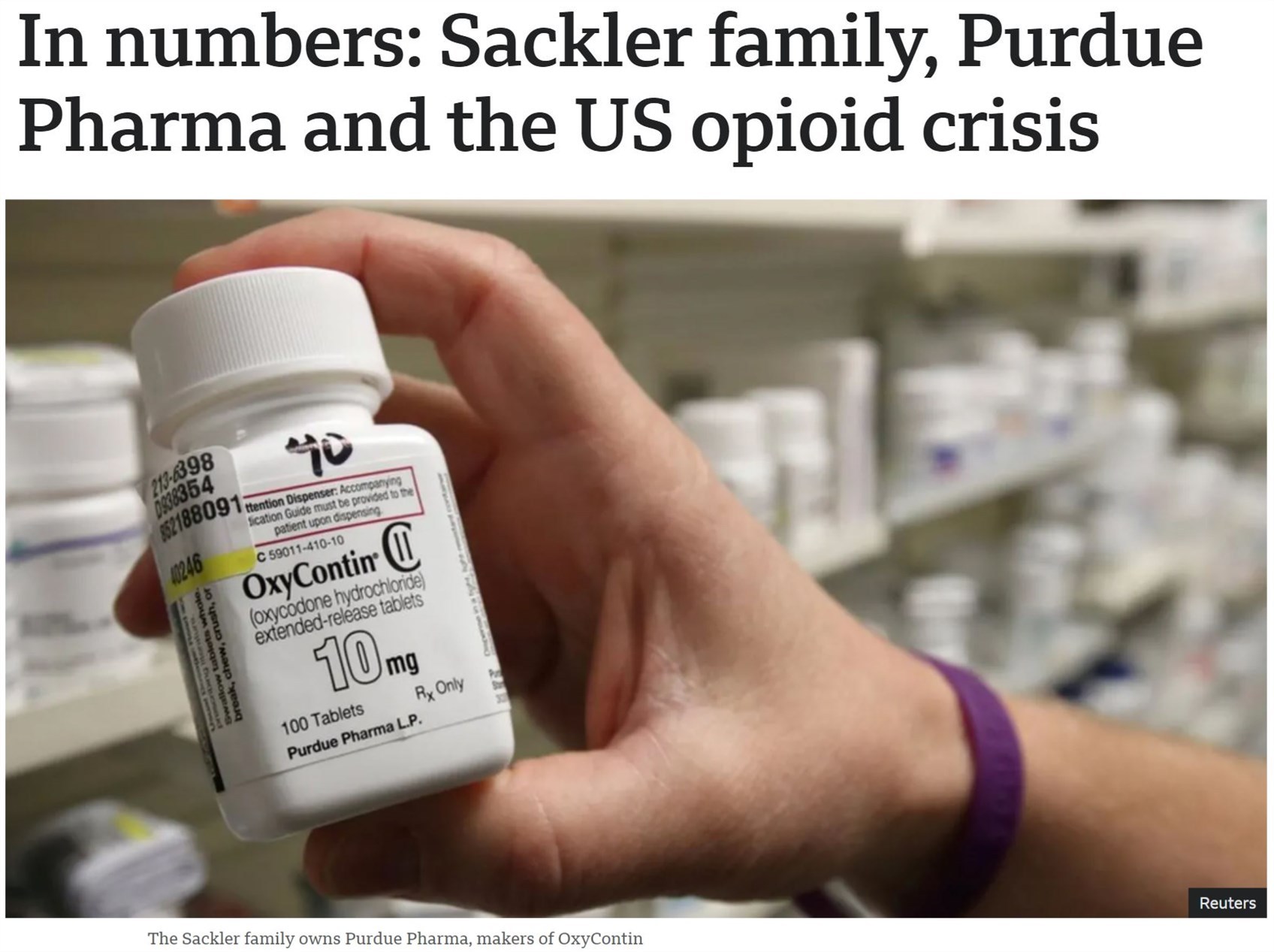 2019年,薩克勒家族還被開(kāi)出天價(jià)罰金,迫使普渡制藥公司總部申請(qǐng)了破產(chǎn)保護(hù)。
