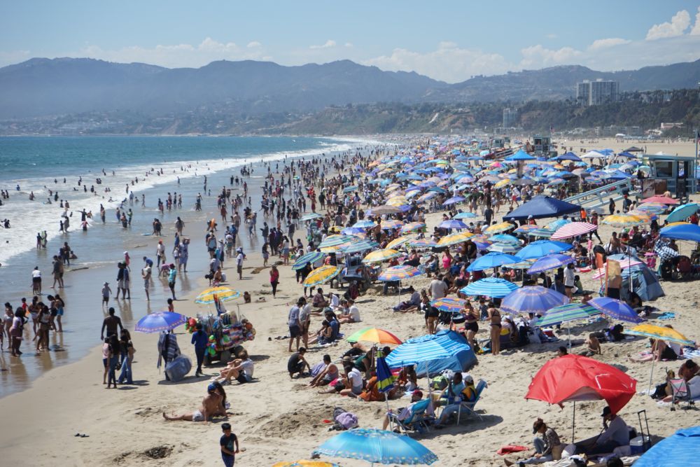 6月23日,人們?cè)诿绹永D醽喼萋迳即壥ツ峥ê┬蓍e避暑。新華社發(fā)(曾慧攝)
