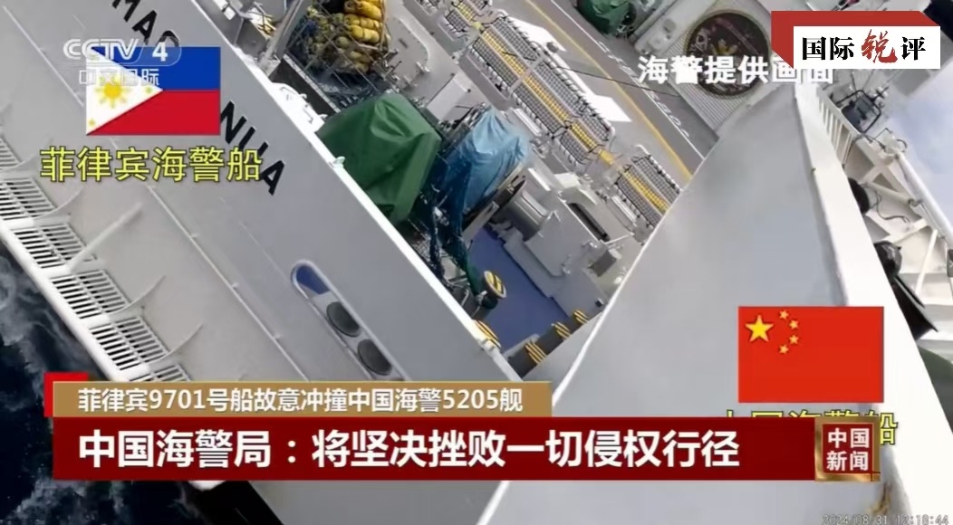 世界看到的是:短短十天內(nèi),菲律賓在中國仁愛礁和仙賓礁海域進行了4次極端危險的沖闖和空中運投行動。最近的一次發(fā)生在8月31日。通過現(xiàn)場視頻,人們可以清楚看到:非法滯留中國仙賓礁的菲海警9701號船起錨,并以危險方式故意沖撞中方正常維權(quán)執(zhí)法的海警船,導(dǎo)致發(fā)生擦碰。中方現(xiàn)場操作正當(dāng)合法,專業(yè)規(guī)范。另外,視頻中還出現(xiàn)了美軍P-8A偵察機干擾中國海警執(zhí)法行動的畫面。這些清晰地證明:造成雙方船只發(fā)生碰撞的責(zé)任完全在菲方;在南海尋釁肇事、升級事態(tài)的是菲方;而在背后推波助瀾、唯恐南海不亂的正是美國。