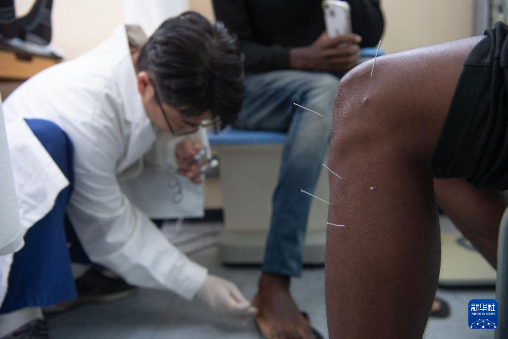 9月9日,在納米比亞首都溫得和克的卡圖圖拉醫(yī)院,醫(yī)療隊(duì)隊(duì)員在中醫(yī)診室為患者進(jìn)行針灸治療。新華社記者 陳誠 攝