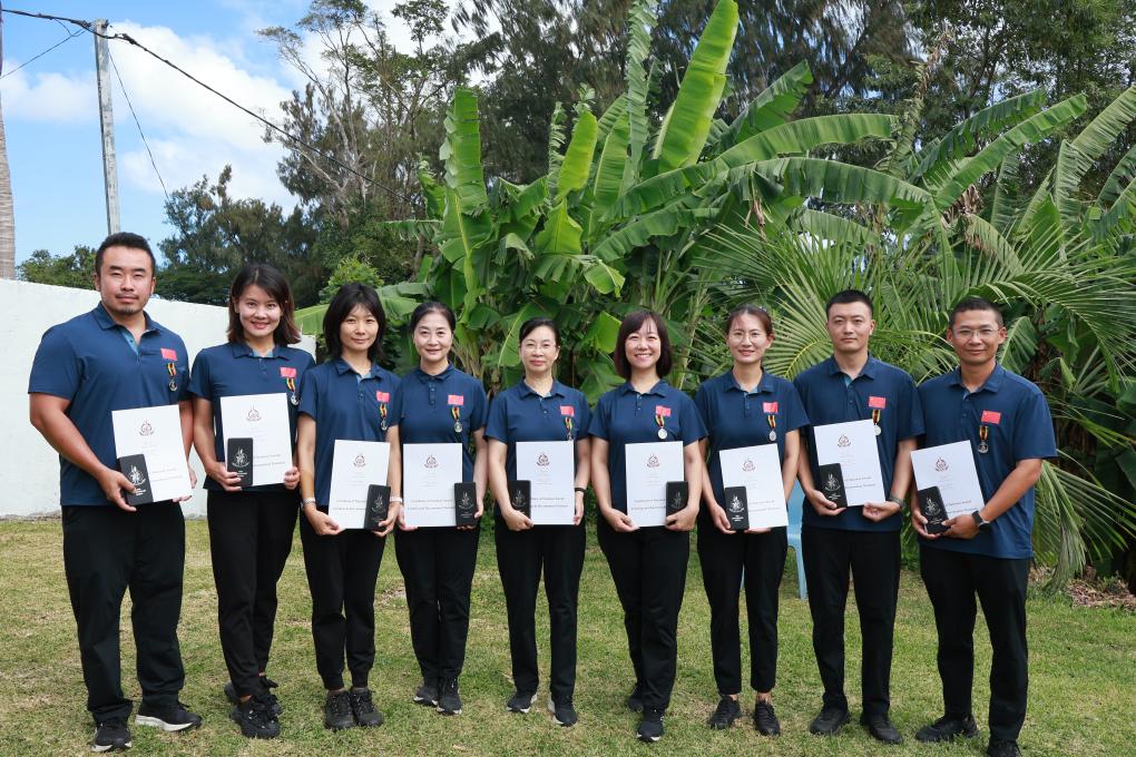 7月30日,在瓦努阿圖首都維拉港,中國援瓦醫(yī)療隊隊員手持證書合影。瓦努阿圖總統(tǒng)武羅巴拉武當(dāng)天向中國醫(yī)療隊9名隊員頒發(fā)“國家勛章”,以表彰他們?yōu)樘嵘哚t(yī)療衛(wèi)生服務(wù)水平、鞏固瓦中兩國醫(yī)療衛(wèi)生合作作出的卓越貢獻。新華社發(fā)(中國援瓦醫(yī)療隊供圖)