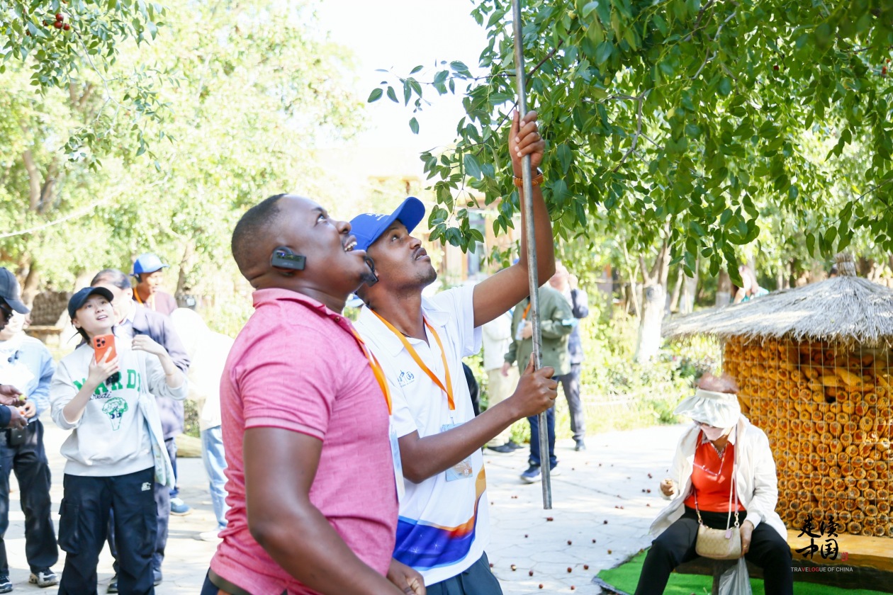 金黃的玉米堆,紅艷艷的辣椒,圓潤翠綠的冬棗,9月的黃羊古落里充滿了豐收的喜悅。20日,這里剛舉辦了中寧縣2024中國農(nóng)民豐收節(jié),園區(qū)里還保留著秋收的作物和節(jié)日的氛圍,外國記者也和縣里的居民一同打棗、撿棗。