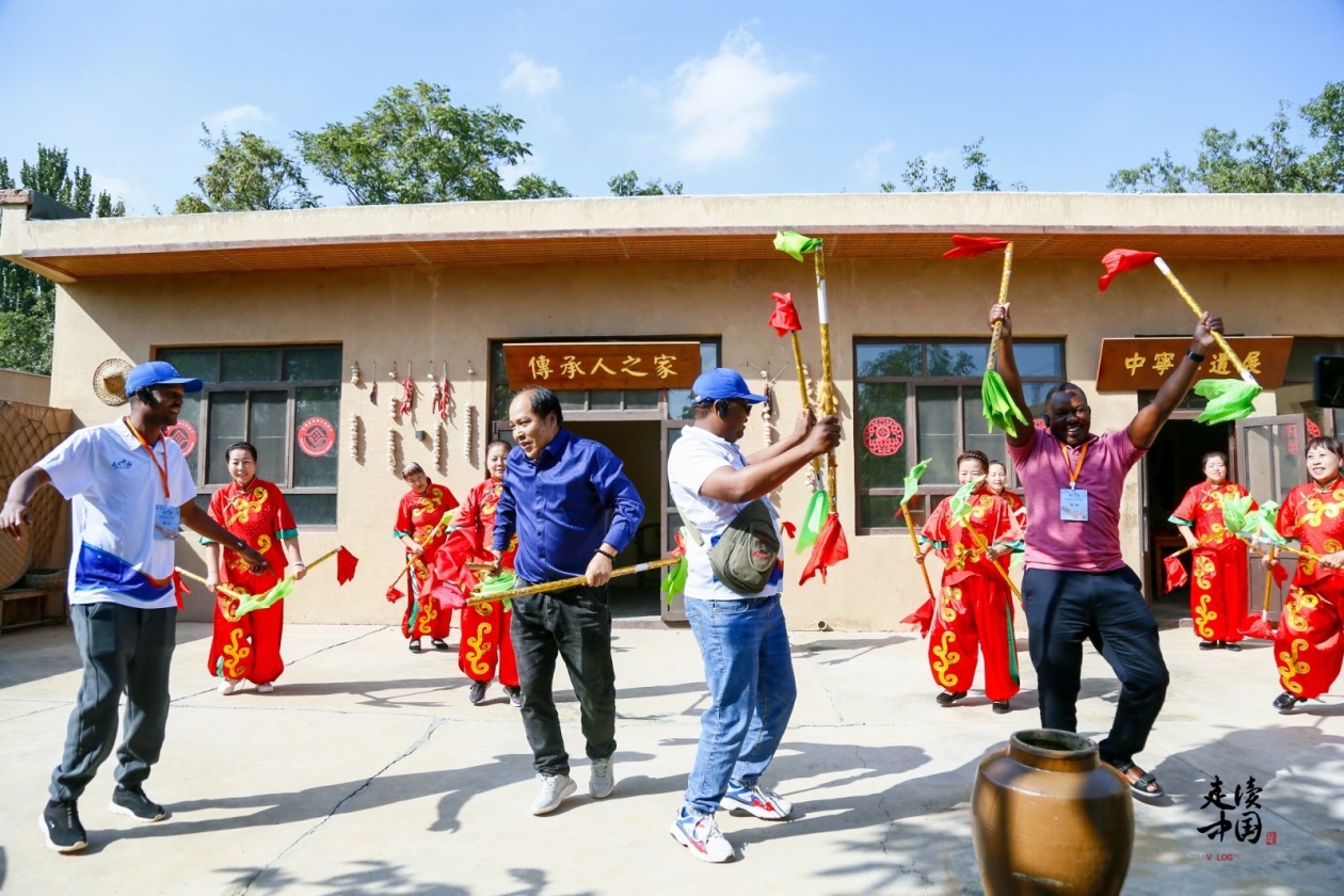 據(jù)介紹,黃羊古落有兩項國家級非遺稱號:黃羊錢鞭和中寧蒿子面制作工藝,且黃羊錢鞭已成為村民鍛煉的一種方式。外國記者也在充滿激情的音樂中和村民一起舞動起來。津巴布韋國家電視臺總經(jīng)理喬納森·提納沃·馬瑞瓦對環(huán)球網(wǎng)記者談論起對于黃羊前鞭的感受,他說:“它非常完美,我的家鄉(xiāng)也有很多舞蹈,但與這里的不同。我喜歡這種形式的舞蹈,步伐統(tǒng)一,表現(xiàn)出了與眾不同的活力?!蓖瑫r,喬納森強調(diào)了黃羊錢鞭這類非物質(zhì)文化遺產(chǎn)的重要性:“這類舞蹈保持了文化的完整性。它歷史悠久,流傳至今,也將延續(xù)到未來。它讓這種蓬勃的生命力會一直存在于孩子們的記憶里?!?/p>