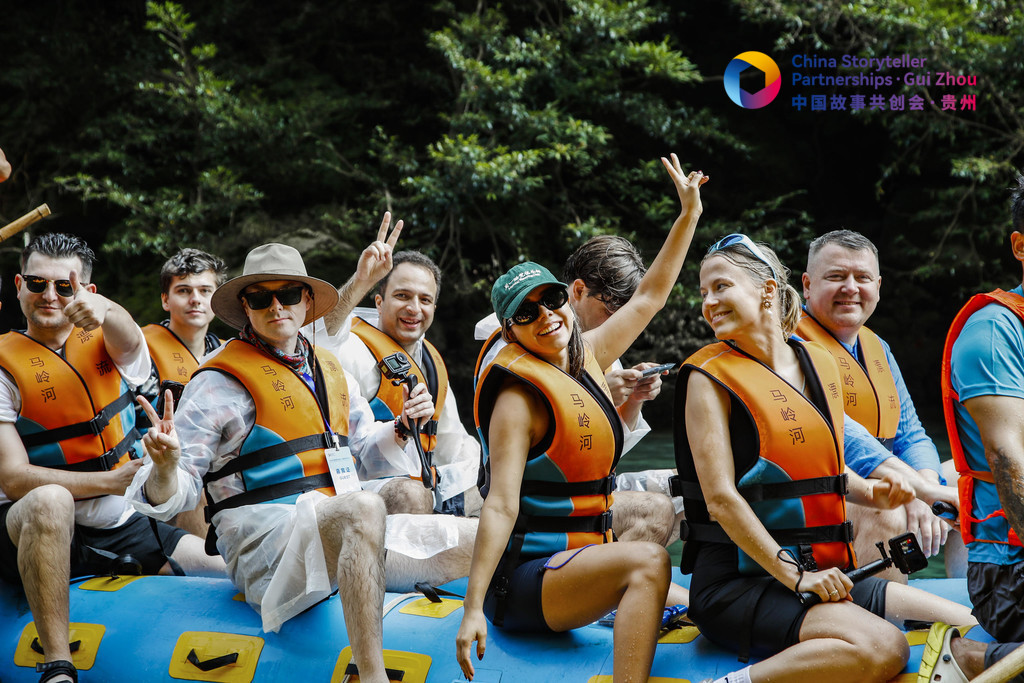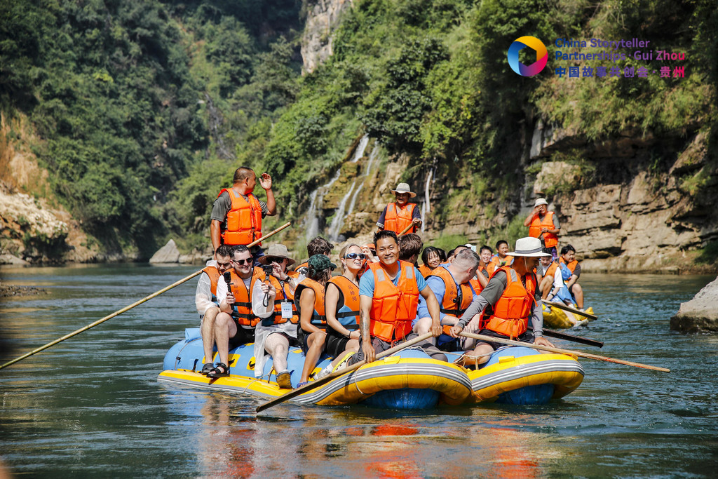 2024中國(guó)故事共創(chuàng)會(huì)“外籍網(wǎng)紅貴州行”采訪團(tuán)外籍成員在興義市馬嶺河峽谷體驗(yàn)漂流。