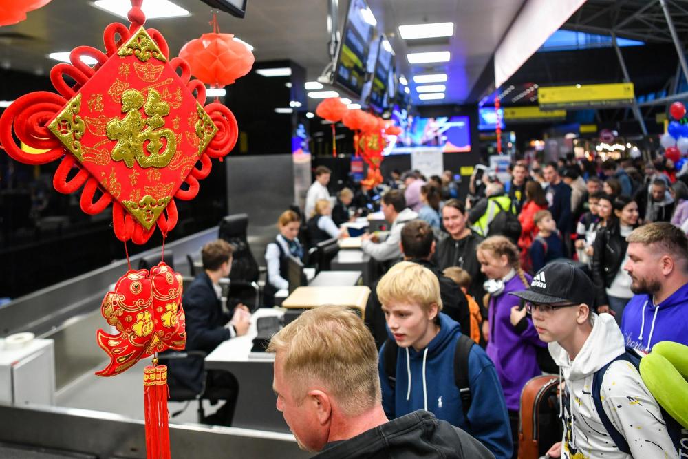 9月28日,在俄羅斯韃靼斯坦共和國(guó)喀山國(guó)際機(jī)場(chǎng),搭乘喀山至上海直飛航班的乘客辦理值機(jī)。新華社記者曹陽(yáng)攝