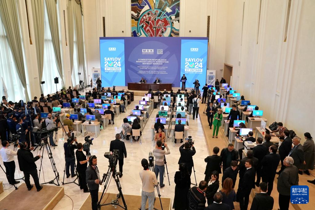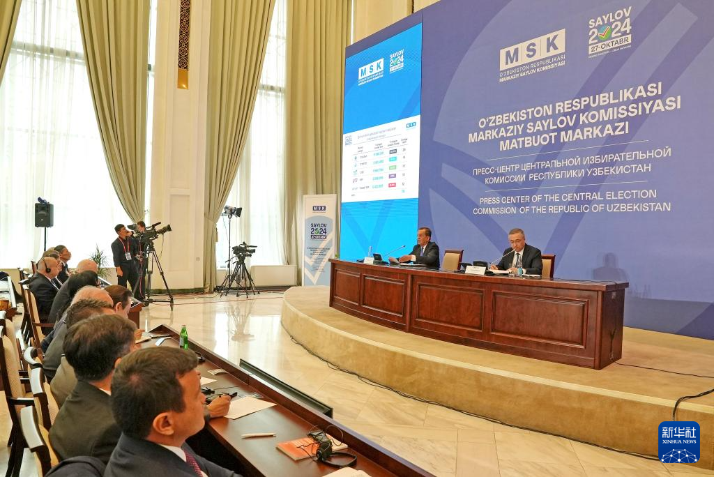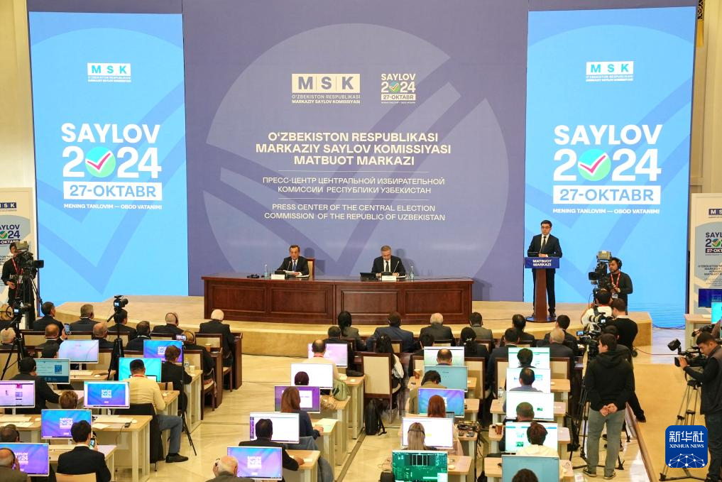 10月28日,烏茲別克斯坦中央選舉委員會(huì)在首都塔什干舉行新聞發(fā)布會(huì)。新華社發(fā)(扎法爾攝)